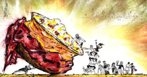 ‘মহিদিকে দেখতে এসেছে আর পাড়ার হয়ে প্রতিনিধিত্ব করছে বুধন। লাগাতেই হবে সম্বন্ধটা, পাড়ার সম্মান— এসব ফিসফাস আসছে। হঠাৎ ছেলে নিজে বলে উঠল, ‘ভাই, আমার রিকুয়েস্ট, একটা শানু হোক।’ তারপর ঐতিহাসিক কাণ্ড।’ নতুন গল্প।