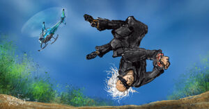 ‘ব্রহ্ম ঠাকুরের যখন জ্ঞান ফিরে এল তখন তিনি মাঝআকাশে। একটা হেলিকপ্টারে বসে আছেন, দু’হাত বাঁধা। পা খোলা থাকলেও তা নাড়ানোর উপায় নেই, হেলিকপ্টারটায় ততটা জায়গাই নেই আসলে। ব্রহ্ম ঠাকুরের জ্ঞান ফিরলে তাঁর অবস্থাটা বুঝে নিতে খানিকটা সময় লাগল।’