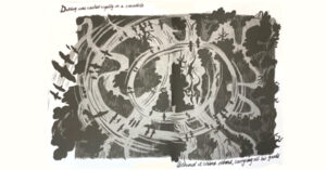 ‘এক জীবনে ছড়িয়ে থাকা বিভিন্ন পর্বের ঝিনিদের, তাই সে সরিয়ে রাখল দূরে। তার মনে পড়ল ছোটবেলায় পড়া একটা বইয়ের কথা। সে-বইটার গল্পের সঙ্গে ছাপা ছবিগুলো তার বাবারই আঁকা। একটা ছোট ছেলে; তার কাকা তাকে শেখাতে লাগল চাষবাস…’