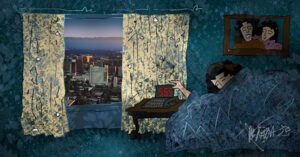 ‘আমি আর দাদা চোরকাঁটা ভরা একটা শর্টকাট ধরেছি, খেয়াল নেই বারীনকাকুর দোতলার কোয়ার্টারের পাশ দিয়ে যাচ্ছি। যদিও আন্টিকে পুলিশে ধরে নিয়ে যাওয়ার পর বারীনকাকু চাকরি ছেড়ে চলে গেছে। কোয়ার্টার বন্ধ থাকে।’