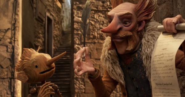 যখন কোনও বিখ্যাত বই অবলম্বনে কেউ সিনেমা বা অন্য কোনও শিল্প তৈরি করেন, সাধারণত একটা-আধটা অন্যরকম ভাবনা ঢুকিয়ে দেওয়ার চেষ্টা করেন, যা মূল বইটায় ছিল না। তবেই ব্যাপারটা নতুন হয়ে ওঠে, পুনর্কথনের একটা সার্থকতা দেখা যায়। আর কখনও, নতুন স্রষ্টা বইটার আদত প্রতিপাদ্যটাকেই চ্যালেঞ্জ করে বসেন এবং গল্পটার কাঠামো মোটামুটি একই রেখে নীতিকথাটা পুরোপুরি উল্টে দেন। যেমন মাইকেল করেছিলেন ‘মেঘনাদবধ কাব্য’ লেখার সময়। এই কাজই গিয়েরমো ডেল টোরো করলেন, তাঁর স্টপ-মোশন অ্যানিমেশন ছবি ‘পিনোকিও’তে (চিত্রনাট্য: গিয়েরমো ডেল টোরো এবং প্যাট্রিক ম্যাকহেল, পরিচালনা: গিয়েরমো ডেল টোরো এবং মার্ক গুস্তাফসন, ২০২২)। আসল গল্পে, পিনোকিও একটা জ্যান্ত পুতুল, যাকে সবাই মিলে শিক্ষা দেয়, কীভাবে ভাল ছেলে হয়ে উঠতে হবে। ভাল ছেলে মানে, বাধ্য ছেলে, যে গুরুজনের কথা শুনে চলে, সমাজের কথা শুনে চলে। পিনোকিও প্রথমে বাধ্য ছিল না, পরে সে বোঝে কোনটা উচিত আর কোনটা নয়। এই সিনেমায়, ব্যাপারটা অন্যদিকে যায়। পিনোকিও খুবই অবাধ্য, সব কিছুকেই সে প্রশ্ন করে। কাঠের পুতুল প্রাণ পেয়ে প্রথমে তার বাবাকে জিজ্ঞেস করে, এটা কী, ওটা কী, এটা দিয়ে কী করে, ওটা দিয়ে কী করে। বাবা তাকে আলমারিতে বন্ধ রেখে গির্জায় যায়, সে দরজা ভেঙে সোজা গির্জায় চলে যায়। গির্জায় খুব রেগে যখন পৌরপ্রধান তাকে বলে, ‘অ্যাই পুতুল, তোকে কে নিয়ন্ত্রণ করে?’, সে তার দিকে আঙুল তুলে চেঁচায়, ‘তোমায় কে নিয়ন্ত্রণ করে?’ অন্য এক দৃশ্যে, গির্জায় কাঠের যিশুর দিকে তাকিয়ে প্রশ্ন করে, ‘এও কাঠের তৈরি কিন্তু একে সবাই ভালবাসে, আমিও কাঠের তৈরি কিন্তু আমাকে কেউ ভালবাসে না কেন?’ যখন তার যুদ্ধে যাওয়ার কথা, তখন সে পালিয়ে গান-বাজনার দলে যোগ দেয়, আর যখন মুসোলিনির সামনে চমৎকার একটা গান শোনানোর কথা, তখন সে দেশাত্মবোধক গানের অশ্লীল প্যারডি করে মুসোলিনিকে প্রাণপণ চটিয়ে দেয়। উপন্যাসটায়, একজন লোক টেবিলের পায়া তৈরি করতে গিয়ে চমকে ওঠে, কারণ কাঠটা কথা বলছে। তখন একজন খেলনা-তৈরির কারিগরকে কাঠটা দিতে, সে একটা ছেলে-পুতুল তৈরি করে, যার নাম পিনোকিও। এই সিনেমায়, এক খেলনা-কারিগরের ১০ বছরের ছেলে মারা যায়, কারণ যুদ্ধ চলছে এবং প্লেন থেকে বোম ফেলা হচ্ছে। বাবা এত বিষণ্ণ ও অবসন্ন হয়ে পড়ে যে তার সমাধির পাশে বসেই কাটিয়ে দেয় বহু বছর। সারাক্ষণ মদ খায় ও কাঁদে। তারপর এক রাতে, সে খুব রেগে একটা গাছ কেটে কাঠ এনে নিজের নতুন ছেলে গড়তে থাকে। সেই রাতে সে যখন নেশার ঘোরে ঘুমোচ্ছে, এক দেবী এসে পিনোকিওর দেহে প্রাণ দেয়, আর বলে, সে বাবার দুঃখ ঘোচাবে, বাবাকে আর একা থাকতে হবে না। বাবা অবশ্য পরেরদিন উঠে এই জ্যান্ত পুতুল দেখে মোটে খুশি হয় না, তার ওপর পুতুল যখন গোটা ঘরটাকে একেবারে তছনছ করে বেড়াতে থা