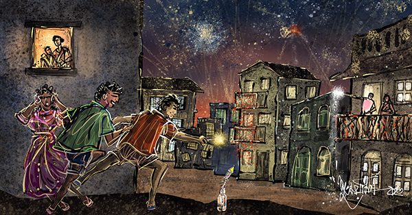 সেইসব সন্ধেগুলোয় একটু তাড়াতাড়িই শীত পড়ত। অন্তত হিম তো পড়তই। তাই আমাদের গায়ে হালকা হাতকাটা সোয়েটার বা পাতলা একখানা চাদর কিছু বিস্ময়ের ছিল না। সেইসব চাপিয়ে অন্ধকার একটু জমে উঠলে শুরু হত বাজি পোড়ানো। আমরা ছোটরা দল বেঁধে থাকতাম ঠিকই, কিন্তু সে-দলের এক বা দুজন বয়স্ক লিডার থাকতেই হত। বাজির মতো ব্যাপার, আগুনের মতো দুরূহ বিষয়, ছোটদের তো একা ছাড়া যায় না! তাই কারও ছোটকাকা, কারও মেজদা, কারও পিসতুতো দিদি, এই গোছের কেউ না কেউ ঠিক জুটে যেত। যে ঠিক করত রকেটের বোতল কোন পাঁচিলে বসানো হবে বা তুবড়ি রাস্তার মাঝখানে রাখা হবে কি না। বাকি কোন অর্ডারে পুড়বে, মানে চরকির পর রংমশাল না ফুলঝুরি, সেটাও এই লিডাররাই ঠিক করত। এমনকী কখন ইন্টারভাল হবে— আমরা একটু যার-যার বাড়িতে গিয়ে জল খেয়ে আবার হাজির হব, সে-সিদ্ধান্তও তাদেরই। কিন্তু সেসব মেনে নিতে আমাদের কোনও অসুবিধে ছিল না। বরং সারাবছর নিভে থাকা একখানা ছোট্ট পাড়া যে এক সন্ধের জন্য এমন ঝলমলিয়ে উঠছে, আর তার সেজে ওঠায় আমরাও শামিল, এইটা ভেবেই আমাদের মন ভাল হয়ে যেত।