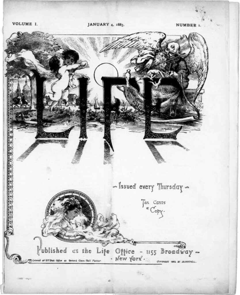 প্রকৃত প্রস্তাবে ‘লাইফ’-এর পথ চলা শুরু উনিশ শতকে। ১৮৮৩ সালের ৪ জানুয়ারি প্রকাশিত হয় প্রথম সংখ্যা। নেতৃত্বে মার্কিন স্থপতি, শিল্পী ও লেখক জন এইমস মিচেল। তাঁর সঙ্গী ছিলেন অ্যান্ড্রু মিলার ও এডওয়ার্ড স্ট্যানফোর্ড মার্টিন। শুধুই লগ্নি করা কিংবা প্রকাশকের দায়িত্ব সামলানো নয়, ‘লাইফ’-এর লোগো ও মাস্টহেড ডিজাইনের মতো গুরুত্বপূর্ণ কাজও নিজেই করেছিলেন মিচেল। কেমন হতে চলেছে ‘লাইফ’— পাঠকদের আভাস দিতে প্রথম সংখ্যার ‘What is Life?’ শীর্ষক শুরুয়াতি কলমে লেখা হচ্ছে—‘Fun is very good for men, and, provided it is of the right sort, the more they have of it, the better. / We wish to have some fun in this paper, and to have it as nearly of the right sort as may be.’ পরবর্তী কয়েক দশক ধরে হাস্যরসের এই ভারসাম্য বজায় রাখার চেষ্টা করে গিয়েছে ‘লাইফ’। নতুন মুদ্রণ-প্রযুক্তি ব্যবহার করে আরও ভালভাবে অলংকরণ ছাপায় নজর দিয়েছে। প্রচ্ছদের ক্ষেত্রেও চেষ্টা করেছে অভিনব ভাবনাচিন্তাকে ঠাঁই দিতে।