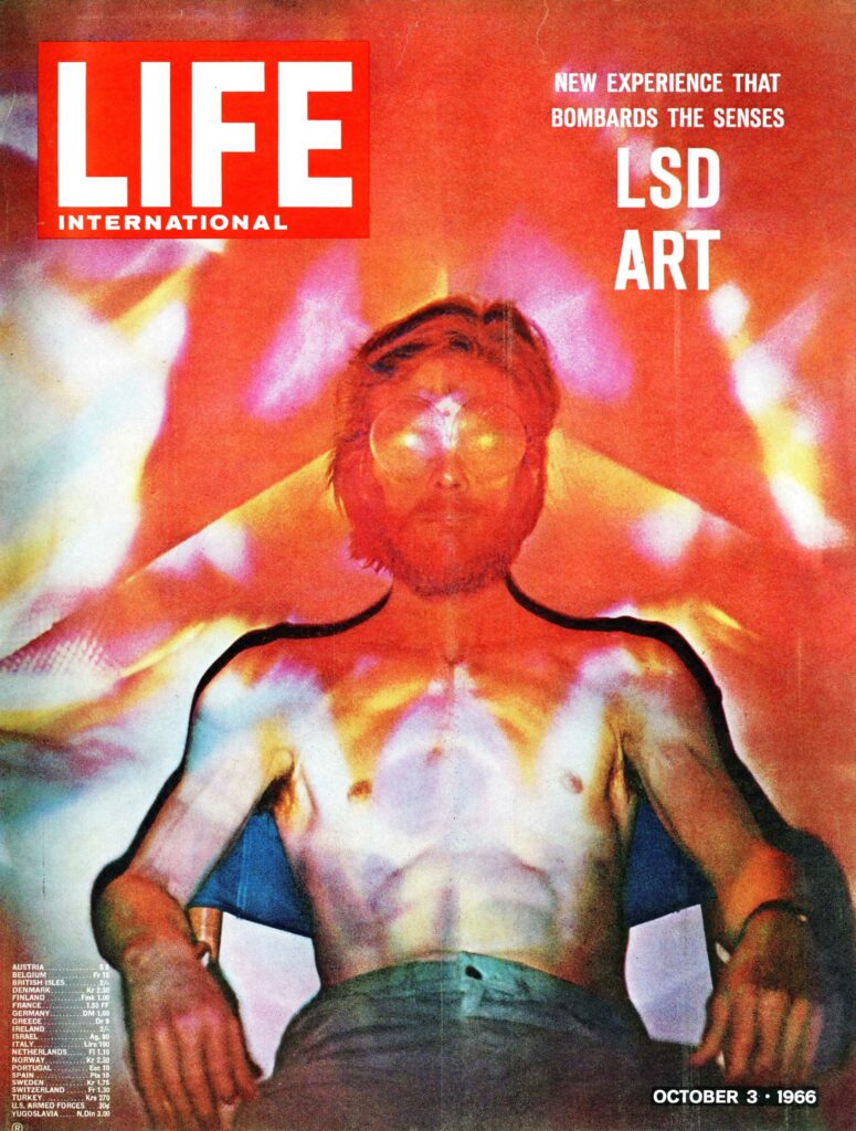 শুধু মনরো নন, অনেক ব্যক্তি ও বিষয়কেই একাধিক বার প্রচ্ছদে তুলে আনে ‘লাইফ’। ছয়ের দশকে এমনই আলোচিত বিষয় ছিল এলএসডি। ততদিনে এই পত্রিকায় রঙিন ছবির আধিক্যও বেড়েছে। নানাবিধ পরিপ্রেক্ষিতে এলএসডি-র মতো ড্রাগের প্রভাব বোঝাতে কার্যকর হয়ে ওঠে রঙের ব্যবহার।