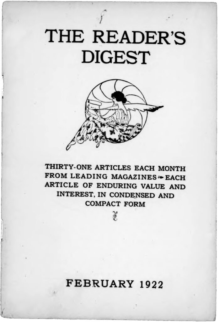 ‘রিডার্স ডাইজেস্ট’। একেবারে শুরু থেকে পত্রিকার নামেই স্পষ্ট হয়ে যায় তার মূল ভঙ্গিটি। নতুন লেখা নয়, অন্যান্য পত্রপত্রিকায় প্রকাশিত লেখা পুনরায় এখানে মুদ্রিত হত, কিন্তু সবসময়ে তা ঠিক ‘পুনর্মুদ্রণ’ ছিল না। লেখা যেমন ছাপা হত সংক্ষেপকৃত আকারে, অনেক ক্ষেত্রে আবার গুরুত্বপূর্ণ কোনও বিষয় নিয়ে অন্যত্র বেরোনো লেখার নির্যাসটুকু কিংবা নির্বাচিত অংশ-বিশেষও। ইদানীং বৈদ্যুতিন মাধ্যমে কিংবা টেলিভিশনেও এমন সাঁটে খবর পরিবেশনের প্রয়াস দেখতে পাওয়া যায়—মানুষের কর্মব্যস্ততার কথা ভেবে বিস্তারিত সংবাদের বদলে অল্প সময়ে পড়া বা দেখার মতো কেজো তথ্যগুলি তুলে দেওয়া হয়। ভাবলে অবাক লাগে, শতাধিক বছর আগেও কিছুটা এই পথেই এসেছিল ‘রিডার্স ডাইজেস্ট’-এর সাফল্য।