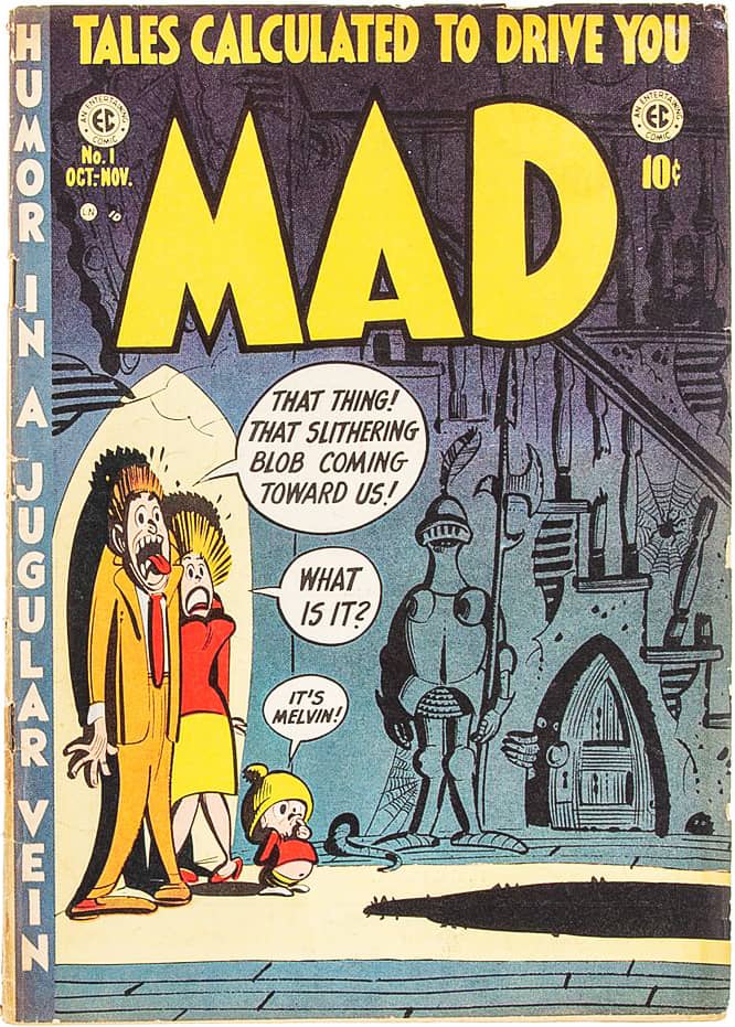 ঠিক প্রথম সংখ্যায় নয়, তবে কতকটা এ-রকমই ঘটেছিল এই পত্রিকার চব্বিশতম সংখ্যায়। বস্তুত এমন সব বিচিত্র ভোজবাজির খেলা ছড়িয়ে থাকত পত্রিকাটির প্রতি সংখ্যাতেই। ‘ম্যাড’। আমেরিকার হাস্যরসধর্মী পত্রিকা। ১৯৫২ সালে প্রথম প্রকাশিত হয় ‘ম্যাড’। অক্টোবর-নভেম্বর সংখ্যা। তবে, শুরুতে এটি ছিল রঙিন কমিকবইয়ের সিরিজ। সম্পাদক ছিলেন মার্কিন কার্টুনিস্ট হার্ভে কার্টসম্যান। প্রকাশ করত ইসি কমিকস। গপ্পের মজা যে পাঠককে ‘পাগল’ করে তুলবে, এ-কথা সোজাসুজি বোঝাতে প্রচ্ছদের অলক্যাপ ‘MAD’ কথাটির আগে অনুভূমিকভাবে বসত একটি বাক্যাংশ— ‘Tales Calculated to Drive You’। আর প্রায় অলুক্ষুণে ক্ষুরধার ব্যঙ্গের আভাস দিতে প্রচ্ছদের বাম পাশে উল্লম্বভাবে লেখা হত সাবটাইটেল— ‘Humor in a Jugular Vein’। এ সবই চলেছিল তেইশতম সংখ্যা পর্যন্ত।