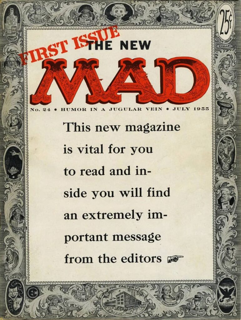 ১৯৫৫ সালের জুলাই থেকে বদলে গেল ‘ম্যাড’। সেই চব্বিশতম সংখ্যার প্রচ্ছদে মাস্টহেডের নীচে ছাপা হল স্রেফ ওই একটি বাক্য— ‘This new magazine is vital for you to read and inside you will find an extremely important message from the editors’। আর, ভিতরে লেখা হল— ‘please buy this magazine’। সম্পূর্ণরূপে পত্রিকা হিসেবে আত্মপ্রকাশ করল নতুন ‘ম্যাড’। হয়ে উঠল আরও ব্যাপ্ত, আরও সুচারু। মজার ছলে সমসময়কে তুলে ধরতে ছবি আর লেখার অনবদ্য মিশেল।