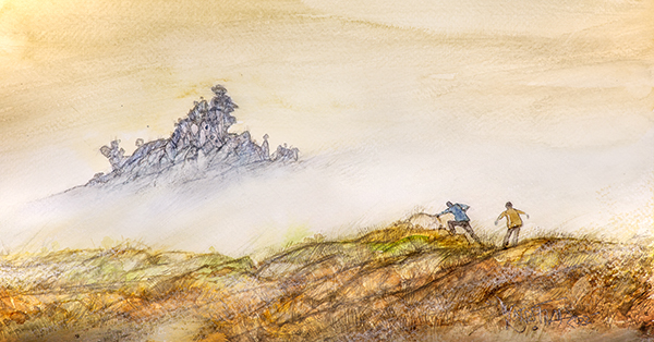 একটা ফিকে ছাইরঙা হাওয়ার পুকুরের মধ্যে দাঁড়িয়ে আছি। তলায় ঝাঁঝি থাকলে, পায়ে ঠেকলে যেমন আবছা দেখা যায়, এখানে তেমন পাথর। তুললাম একটা। ছুঁড়লাম না। আওয়াজ হবে। কাছে যাওয়া যাবে না। শব্দের সোর্স হারিয়ে ফেললে মুশকিল। ওরা দূরে সরে গেছে। হাওয়া নেই। থম মারা ঠান্ডা। একটা তিনশো ষাট ডিগ্রি ব্ল্যাঙ্ক গ্রে-বোর্ডে মরিয়া হয়ে সাউন্ড খুঁজতে লাগলাম। কোন দিক থেকে এসেছি সেটা গুলিয়ে গেছে। চেঁচাব? টলমল করে চলছি। চলে কী লাভ, থামলে কী সুবিধে? জমিটা ঢালু, আমাকে টানছে নীচের দিকে। পাথর কম, কাঁকর বেশি। স্লিপ করছে। সেখান থেকে আর একটা টানা ভারী শব্দ উঠে আসছে। খনির মধ্যে চলা ঠেলাগাড়ির চাকার মতো না? এদিকে মাথার ওপরে, যেখানে আকাশ থাকার কথা, সেটা অন্ধকার হয়ে আসছে। আর নয়। যে-কোনও এক দিকে যেতে হবে। যেদিকেই যাই, এই ভয়ঙ্কর কুয়াশা থেকে বেরোতে পারব। ঢাল বেয়ে উঠতে লাগলাম সাবধানে। মোটামুটি সমতল জমিতে সবে পৌঁছেছি, হুড়মুড় করে কিছু একটা পড়ল পিছনে। ফিরে দেখি ওদিকটা অন্ধকার হয়ে যাচ্ছে।