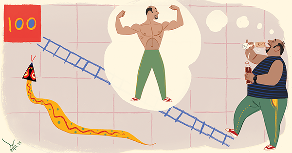 নীলা : লোভ সংবরণ করতে গেলে একটু কঠোর মনোভাব থাকা ভাল। নাহলে নিজের সিদ্ধান্তে অচল থাকা যায় না। দুনিয়া চায় তুমি বিপথে যাও। বিপথে যাবার হাজার প্রলোভন তোমার সামনে ছিটিয়ে রাখা আছে। রং মেখে প্রতিটি অস্বাস্থ্যকর খাদ্যদ্রব্য তোমাকে ডাকছে। এই দ্যাখো কোল্ড ড্রিঙ্ক। এই দ্যাখো বার্গার। এই দ্যাখো পিজ্জা। এই দ্যাখো চিপস। কোনওদিন দেখেছ আপেলের বিজ্ঞাপন? শসার বিজ্ঞাপন?