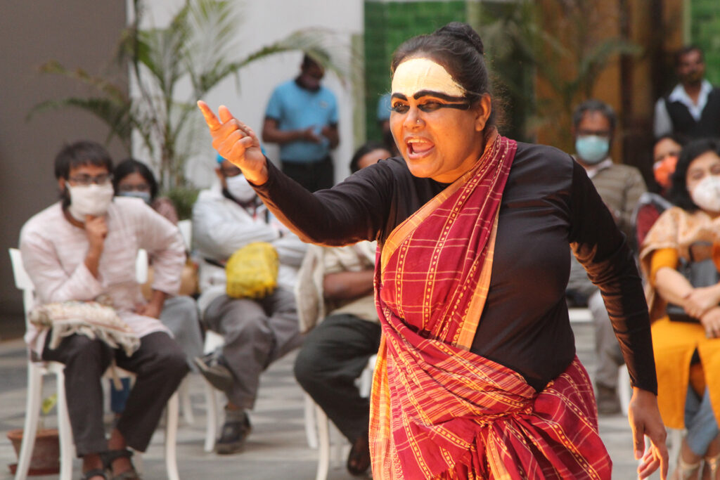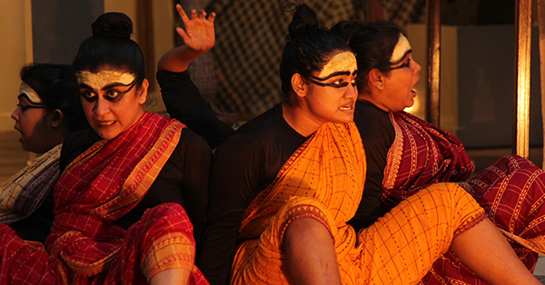 ঘরে বাইরে প্রদর্শনীতে অথ হিড়িম্বা কথার পার্ফর্মেন্সের ছবি সৌজন্য দিল্লি আর্ট গ্যালারি (ড্যাগ); ছবি তুলেছেন লেখক।