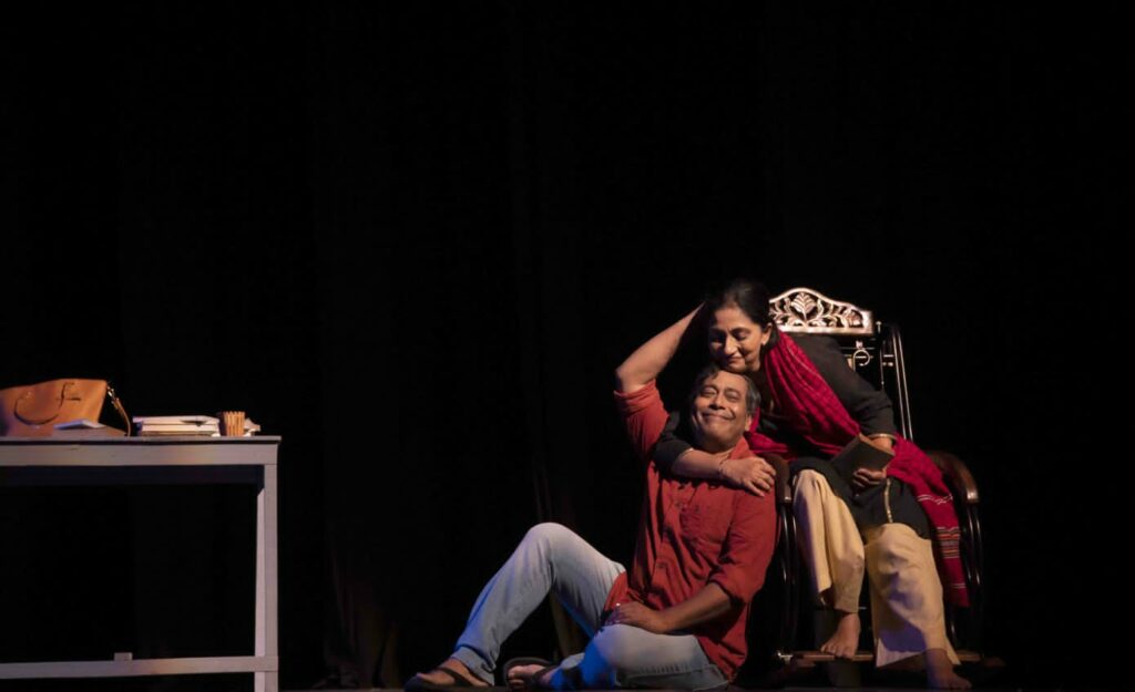 বলছি বটে ‘সুমনের নতুন নাটক’, আসলে ‘অপ্রিয় সত্য’র আদত নাটককার রাজীব নায়েক। আধুনিক মরাঠি নাটকের ব্রহ্মা-বিষ্ণু-মহেশ্বর অর্থাৎ তেন্ডুলকর-এলকুঞ্চওয়র-আলেকরে মজে থেকে আমরা সবসময় খেয়াল করি না যে গত তিন দশকে ঢের এগিয়ে গেছে মরাঠি নাটক। শিরীষ অঠবালের মতো দুয়েকজনের নাটক আমাদের এখানে হয়েওছে। গান্ধারের ‘কাছের মানুষ’ মনে পড়ে? ওটা শিরীষের লেখা। রাজীব নায়েকের ‘শাঠেচা কে করেচা?’ বাংলায় আগে হয়েছে। আজ থেকে ছ বছর আগে, কনকনে শীতের মরসুমে, এই একাডেমিতেই, থিয়েটার ফর্মেশন পরিবর্তক করেছিল ‘মিত্রকে নিয়ে কী করিতে হইবে?’ জয়রাজ ভট্টাচার্যের নির্দেশনায় জয়রাজ আর দামিনী বসু তাতে অভিনয় করেছিলেন। বেশি শো হয়নি, তবে স্বল্প আয়োজনে অল্প আয়াসে আমাদের মনে দাগ কেটেছিল সেই নাটক। জয়রাজের গুরু সুমন এই নাটকটাকেই ফের মঞ্চে আনলেন। অনেক দিনের সহযোগী উজ্জ্বল চট্টোপাধ্যায়ের হাতে এর বাংলা রূপান্তর হল ‘অপ্রিয় সত্য’।