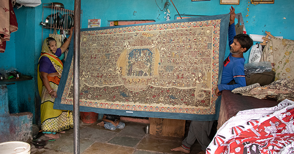 With the Chauhans though, frustration is dominant. Katab isnât dependent on so many external factors, nor does it involve that many steps. The Chauhans are fairly prosperous. Their concern is for the community of artisans engaged in applique and the survival of the craft itself. The question is, where are the myriad government agencies tasked for the welfare of artisans?Â