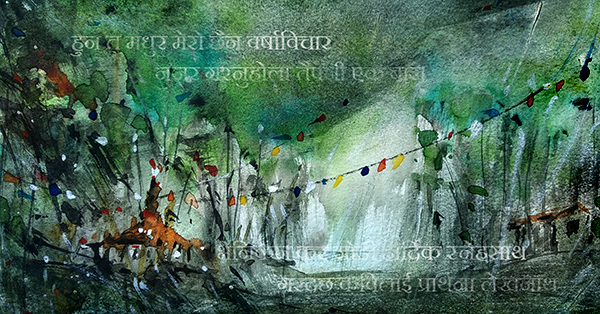 Lekhnath Paudyal, considered to be the architect of modern Nepali literature, is often spoken of in shorthand as âkabi shiromaniâ. His name, of course, means the god (ânathâ) of writing (âlekhâ). A classicist whose poems owe to his understanding of Sanskrit poetics, Paudyalâs influence on the next generation of poets has been minimal. I never heard him being mentioned by the few Nepali poets I knew from university or in Darjeeling. And hence the greater surprise of his place in Aratiâs memory. Paudyalâs first major composition was âVarsha Vicharaâ (A Reflection on the Rains) in 1909.Â