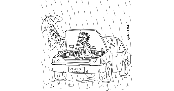 ‘আবার সেই জুদ্দু নিয়ে নাটক? আবার সেই রাজনৈতিক কচকচানি? তারপরেও উনি দেখছেন পৃথিবীর এখন হুবহু সেই আগেরই চেহারা, সেই যুদ্ধবাজি! রাশিয়া বনাম ইউক্রেনের কথাও বললেন! ৬০ বছরে মানুষের সভ্যতার বিবর্তনের চেহারাটা বিপথগামী দেখে ব্রেখট বোধহয় একটু রাগেই পাইপটা ছুঁড়ে ফেলে দিলেন।’ ব্রেখট-এর সঙ্গে উত্তমের দেখা।