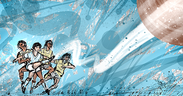 আমাদের সেই স্টাইল, সেই ঘুড়িটা বিদেশে চলে যাচ্ছে গো দোস্তোজি। বাংলাদেশ না, আরও অনেক দূরে, ফার দ্যান দ্য অবলিভিয়ন। বাড়িটা ভাঙছে। গল্পে ঢুকে পড়ছে দুষ্টু মন্ত্রী, রাগি পেয়াদা। বুচার ক্লদিও জেন্টাইল, বাতিস্তা। রক্তবীজ, রক্তবীজ। মনে পড়ছে কথার ওপর কথা ছুড়ে দেওয়া তোমার সেই লেট নাইনটিজ মেজাজ দোস্তোজি, আর জীবনে একবারও বলে কিক না করা ফিফা প্রেসিডেন্ট ব্ল্যাটারের সেই কথাটা— ‘দ্য লাস্ট স্টার ফ্রম আর্জেন্টিনা ওয়াজ ডি স্টিফানো।’ এরা, এই এরাই আমাদের গল্পে চলে আসে। ইতালিয়া নাইনটির ফাইনালের হিংস্র সেই পেনাল্টিটার মতো। এফিড্রিনের মতো। দু-হাজার দশের একটার পর একটা ডিফেন্স ল্যাপ্সের মতো। বাড়িটা ভাঙছে। গ্রিক স্টয়েক ফিলজফার সেনেকার সেই কথাটা— ‘হি ওয়াজ ডুয়িং এভরিথিং পজিবল, বাট দ্য হাউজ ওয়াজ ওল্ড।’ সময়টা ভাঙছে। পাওয়ার, পাওয়ার, পাওয়ার। মেক্সিকান ছিয়াশির সেই কড়কড়ে রোদে টেলিভিশনকেন্দ্রিক ফুটবলের বিরুদ্ধে তোমার, তোমাদের দলের সেই প্রতিবাদ্গুলোর কথা মনে পড়ছে দোস্তোজি। মনে পড়ছে দক্ষিণ ইতালির নাপোলির গোল্ডেন মোমেন্ট আর হিংসেয় জ্বলে পুড়ে যাওয়া ইতালিয়া নাইনটিজের গ্যালারি— তুমি পায়ে বল পেলেই হুইসল, টিটকিরি। ব্রেহমের পেনাল্টি রেস্ট অফ দ্য ইতালির পেনাল্টি। ফাইনালে তোমার কান্নার পাশাপাশি ওদের হিংস্র হাসি দোস্তোজি। আর এদুয়ার্দো গ্যালিয়ানোর ‘সকার ইন দ্য সান অ্যান্ড শ্যাডো’-র সেই কথাগুলো, ‘মারাদোনা ওয়াজ কমিটেড দ্য সিন অফ বিয়িং দ্য বেস্ট, দ্য ক্রাইম অফ স্পিকিং আউট অ্যাবাউট থিংস দ্য পাওয়ারফুল ওয়ান্টেড কেপ্ট কোয়ায়েট …’। আর সেই সত্যি কথাটাকে, সেই উদ্ধত সিগারটাকে, সেই আরনেস্টো চে-র ট্যাটুটাকে আমরা বড্ড ভালবেসে ফেলেছিলাম গো দোস্তোজি। গাছের মাঝে লাভ দিয়ে এঁকে রেখে দেওয়া আমাদের সেই সিল করে দেওয়া নীল-সাদা গলি, টিফো— পাড়ায়-পাড়ায় ওড়া নীল, সাদা আবার নীলের আয়তের মাঝে এঁকে দেওয়া ইনকা সূর্যের দেবতার সেই সান অফ মে-র হলুদ মায়া, বৃষ্টিতে, কাদায় ডুবে যাওয়া একটা চুপসানো বল খুঁজতে যাওয়া কড়কড়ে বাজের বিকেলের মতো ভয়ঙ্কর সুন্দর দিনগুলো— কীভাবে সব বদলে গেল, হারিয়ে গেল দোস্তোজি। আর একটা সাডেন ক্রেডিট লাইনের মতো বুয়েনস আয়ারস প্রভিন্সের একটা ডিভানে শুয়ে, ঘুমের ভেতর তুমি হিংস্র এক সেলফিশ ডোয়ার্ফের মতো হারিয়ে গেলে দোস্তোজি। আর আমাদের ঘুড়িটাও ভেঙে গেল…