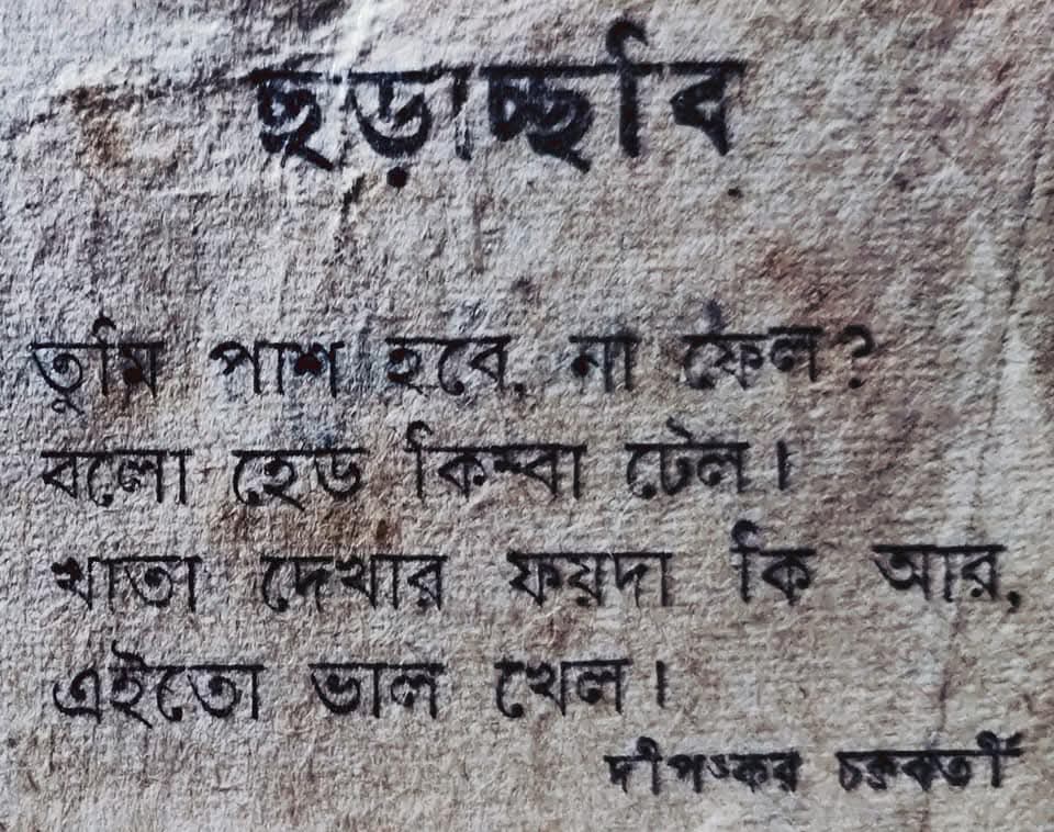 তখন স্কুল-কলেজের ফাইনাল পরীক্ষায় অনেক সময়ই নম্বরের কোনও মাথামুন্ডু থাকত না। একদিন ডেস্কে বসে হঠাৎ আমার মাথায় একটা ছড়া এল। লিখলাম: