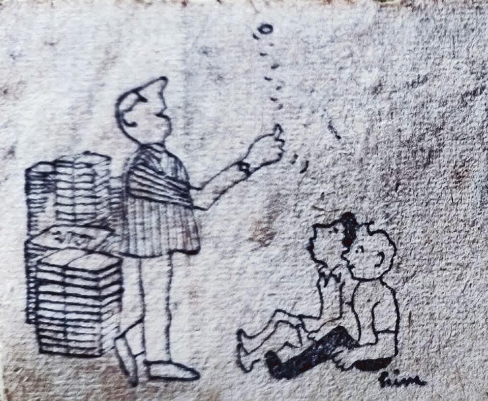 হিমানীশদাকে ছড়াটা দেখাতেই, উনি কাগজটা টেনে নিয়ে তার পাশে কলম দিয়ে চটপট একটা কার্টুন এঁকে ফেললেন। একজন পরীক্ষকের পাশে গাদা গাদা উত্তরপত্রের বান্ডিল বাঁধা। সামনে পা ছড়িয়ে বসে দুই অভাগা শিশু। তিনি একটা মুদ্রা টস্ করছেন, তাই দিয়ে পরীক্ষার্থীদের ভাগ্য নির্ধারণ হবে। আমার ওই ছড়া আর হিমানীশ গোস্বামীর কার্টুন মিলিয়ে ‘ছড়াচ্ছবি’ নামে আনন্দমেলা-য় বেরিয়েছিল।
