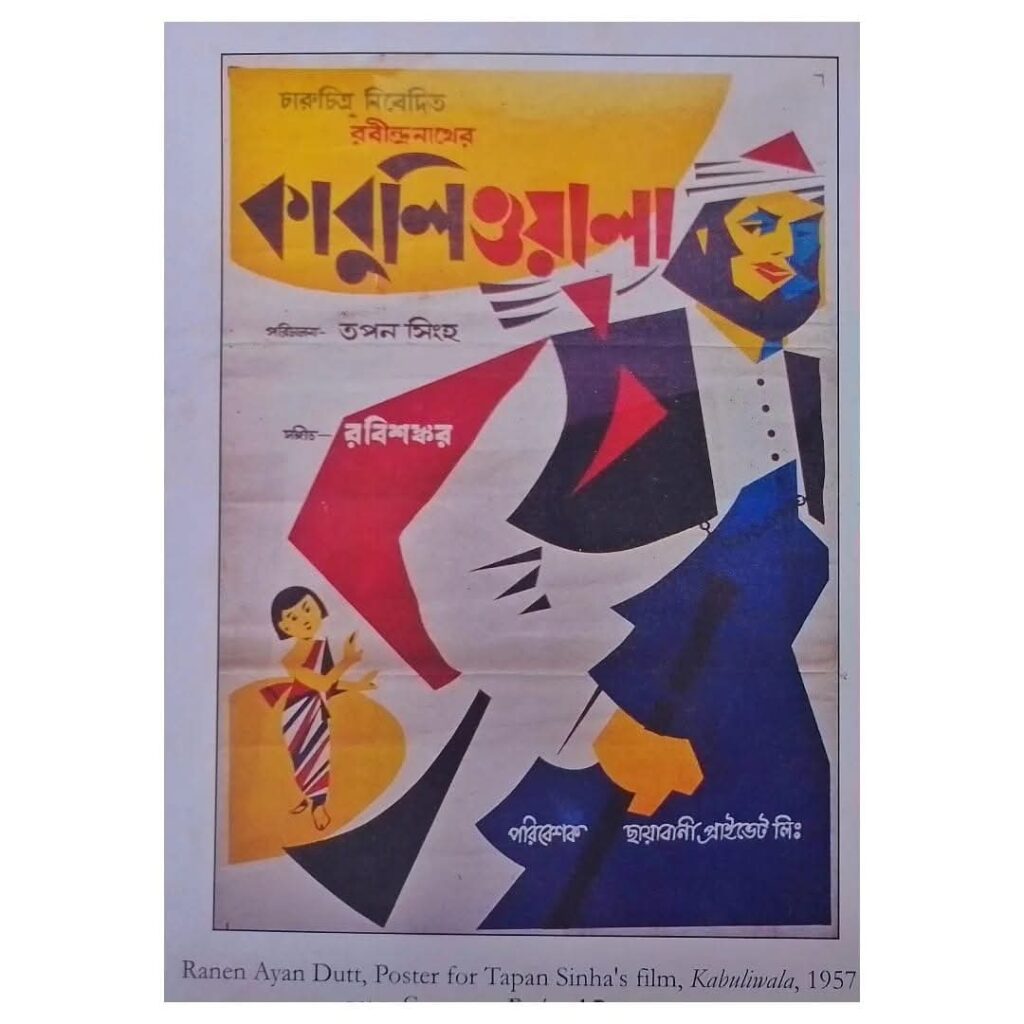 আরও একদিন, রণেনকাকা আর আমি গল্প করছি বসে, কথা উঠল ‘কাবুলিওয়ালা’ সিনেমার পোস্টার নিয়ে। উনি প্রথমে জিজ্ঞাসা করলেন, আমি পোস্টারটা দেখেছি কি না! আমি ‘হ্যাঁ’ বলতেই আলোচনা অন্যদিকে মোড় নেয়। সেদিন ওঁকে জিজ্ঞেসও করেছিলাম যে, ওই স্টাইলটাই কেন! তখন উনি গল্পটা বললেন, ‘তপন একদিন রাতে বাড়িতে এল। ততদিনে ‘কাবুলিওয়ালা’র শুটিং শেষ। এসে বলল, পরশুদিন সকালে পোস্টারটা নিয়ে যাব। আমি পড়লাম মুশকিলে! সাইজ জানা, ডিজাইনটাও মোটামুটি ভেবে রেখেছি, কিন্তু একদিনের মধ্যে করব কী করে! অয়েল মিডিয়ামে যেভাবে ভেবে রাখা, সেই অনুযায়ী কাজ শুরু করলে তো শুকোতেই সময় চলে যাবে অনেকটা! অনেক ভেবেচিন্তে শেষে কাগজ কেটে-কেটে পোস্টারটা করি।’