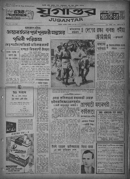 আরও আশ্চর্যের, এমন গদগদ কবিতা-বন্দনা কোনও ভারতসন্তানকে নিয়ে নয়, মানে, যাঁকে দেখে-টেখে এই পোড়া দেশের তরতাজা ছেলেপুলে অমন পরিস্থিতির মধ্যেও আঁকড়ে ধরার মতো কিছু পাবে। উপলক্ষ, বরং বছর সাতাশের এক যুবক, নাম ইউরি অ্যালেক্সিয়েভিচ গ্যাগারিন, নিবাস ঘাৎস্ক, সোভিয়েত। বিলিতি সংবাদমাধ্যম থেকে জানা গিয়েছে, তিনি ৫ টন ভরের শূন্যযানে চেপে পৃথিবী প্রদক্ষিণ করবেন। বাংলা নববর্ষের প্রাক্কালে বিস্ময়াবিষ্ট বাঙালি সেই খবর শুনে তাই যথোচিতভাবে আঁকড়ে ধরেছে কবিতাকে। এমনকী, মহাকাশ-জয়ের মাসআষ্টেক বাদে সেই ‘সোভিয়েত-বীর’ যখন কলকাতায় আসবেন, তখনও সাংবাদিক সম্মেলনে তাঁর বেঁটেখাটো চেহারা, সাধারণ সাদা রঙের পোশাক-আশাক দেখে ‘যুগান্তর’-এর ‘আশাহত’ সাংবাদিক স্মরণ করবেন বিহারীলাল চক্রবর্তীকে– ‘পদে পৃথ্বী, শিরে ব্যোম,/তুচ্ছ তারা সূর্য্য সোম/নক্ষত্র নখাগ্রে যেন গণিবারে পারে।’ (যদিও, বোধহয় পাঠকের সুবিধার জন্যই ‘পৃথ্বী’-কে সহজ করে ‘পৃথিবী’ ছাপা হয়েছিল)