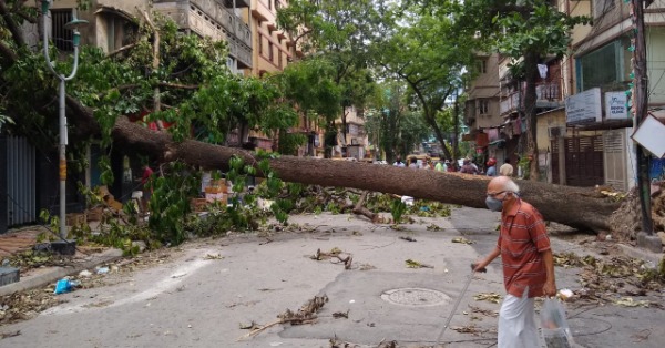 আমফানে কলকাতায় বাড়ির ওপর গাছ পড়ার ছবি