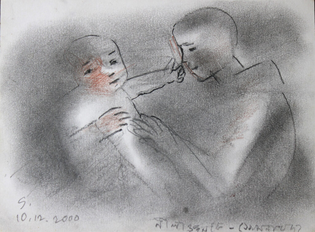 তখন নতুন বাছুরের শিং গজাবার মতো আমাদের হাত থেকে কবিতা বেরোচ্ছে। আমি আর আমার প্রিয় সতীর্থ বিক্রম সিংহ খাঙ্গুরা ভাবলাম, দুজনের কবিতা নিয়ে একটা বই বেরোবে আর তাতে ছবি আঁকবেন সোমনাথ হোর। সোমনাথদা আর রেবাদির মেয়ে চন্দনাদি ছিল আমার আর বিক্রমের এক রকমের পৃষ্ঠপোষক। চন্দনাদি বলল, ‘ঠিক আছে। বাবার সঙ্গে বাড়ি এসে দেখা কর, কিন্তু কী হবে আমি কিছু জানি না।’ তখন শ্যামবাটির বাঁধের পাড়ে ওঁদের বাড়ি ছিল। আমি আর বিক্রম একা যেতে ভয় পেয়ে অজয়দা বলে এক পেটানো চেহারার দাদাকে নিয়ে গেলাম। অজয়দা পাশেই নবনালন্দা স্কুলে তখন নাচ শেখাচ্ছে। নিয়মিত ব্যায়াম এবং মারামারি করত। আমরা ভাবলাম, ছবি আঁকার প্রস্তাব আমরা দেব, ধমক খাওয়ার পরিস্থিতি হলে অজয়দাকে এগিয়ে দেব। সেটা ছিল শীতকাল। সোমনাথদা বারান্দায় একটা কাঠের চেয়ারে বসে। গায়ে একটা মিহি চাদর জড়ানো। লম্বা চুল, দৃষ্টি তীক্ষ্ণ। যেন এক স্থিতপ্রজ্ঞ সাধক, তাঁর ধ্যানের আসনে বসে আছেন। চন্দনাদি ভিতর থেকে একবার উঁকি মেরে চার কাপ লাল-চা দিয়ে স্মিত হেসে আবার ভিতরে চলে গেল। সেই হাসির মধ্যে কোথাও যেন একটা উদ্বেগের ছায়া ছিল— সম্ভবত দুই অসহায় কবি যশপ্রার্থীর দুঃসাহসিক প্রকল্প এবং তার সম্ভাব্য পরিণতির কথা ভেবে। দু’চার কথা বলার পর আমরা মূল কথাটা পাড়লাম— ‘আমরা কবি। আমাদের কবিতার বই বেরোবে। সঙ্গে চাই আপনার আঁকা নতুন বেশ কয়েকটা ছবি।’ সোমনাথদা স্থির। দৃষ্টি বহু দূরে প্রসারিত। যেন আমাদের ভিতর দিয়ে লাল বাঁধের স্থির জলাশয়ের দিয়ে তাকিয়ে। দীর্ঘ স্তব্ধতায় আমাদের হাত-পা অসাড় হয়ে গেছে। পালাবার প্রস্তুতি নিচ্ছি। সোমনাথদা অজয়দাকে বললেন, ‘নবনালন্দার সামনে রাস্তাটা কাটা। যেতে খুব অসুবিধে হচ্ছে। একটা কোদাল দিয়ে মাটি ভরাট করে আগে ওটা সমান করে তারপর এসো।’ ‘আচ্ছা’ বলে আমরা সেদিন ফিরে এলাম। সাহস করে আর কোনও দিন, অন্তত নিজেদের কবিতার সঙ্গে সোমনাথ হোরকে ছবি এঁকে দিতে বলিনি। কিন্তু তাঁর স্নেহ আর প্রশ্রয় পেয়েছি অনেক।