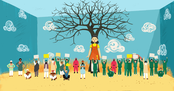 বছর শেষে যে-যে খবর দুনিয়ার সমস্ত সংবাদমাধ্যম ফিরে দেখছে, তার মধ্যে স্কুইড গেমের অভাবনীয় সাফল্যের পাশাপাশি রয়েছে আরও একটি খবর, যা আমাদের হৃদয়ের আরেকটু কাছে। শুধু হৃদয় কেন, বাড়ির কাছেও বটে। পাঞ্জাবের কৃষকদের আন্দোলনের সাফল্যকেও ‘অভাবনীয়’ আখ্যা অনায়াসে দেওয়া যায়। যে-তিন কৃষিবিল সরকারকে প্রত্যাহার করতে হল তার পক্ষে এবং বিপক্ষে বহু কথা বলা যায়, ঢুকে যাওয়া যায় এমন এক বিতর্কে যা আন্দোলনের সাফল্যের সঙ্গে-সঙ্গেই শেষ হয়ে যায় না। কিন্তু সে-বিতর্কে না ঢুকেও একটি উপসংহার নিশ্চিত ভাবেই রেখে দেওয়া যায়— বিগত প্রজন্মের চেনা ধনতন্ত্রের দিন ফুরিয়েছে।