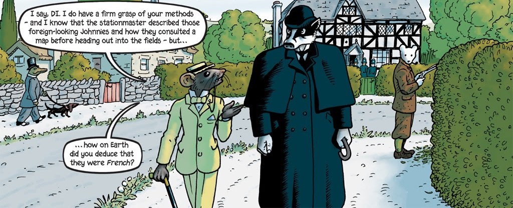 গল্পের কেন্দ্রে রয়েছে একটা ব্যাজার। না, মুখ ব্যাজার জাতীয় কিছু নয়, আমি badger প্রাণীটার কথা বলছি। সেই লোমশ সাদা-কালো নিশাচর সর্বভূক প্রাণী। সাধারণত হিংস্র নয়, কিন্তু কোণঠাসা হলে নিজেদের ধারালো নখ আর দাঁত ব্যবহার করতে পিছপা হয় না, সেই ব্যাজার। স্কটল্যান্ড ইয়ার্ডের ডিটেকটিভ ইন্সপেক্টর আর্চিবাল্ড ‘আর্চি’ ল্যেব্রক সেই জাতেরই প্রাণী। সুঠাম মাংসল দেহটা (‘ঢাই কিলো কা হাথ’ সহ) প্রায় সর্বদাই ওভারকোটে লুকানো থাকে। ইন্সপেক্টর লেব্রকের চরিত্রকে বর্ণনা দেওয়া যায় অনেকভাবেই। সে শার্লক হোমসের কায়দায় হাতে কালির ছোপ, আসবাবপত্রে ধুলোর স্তর, ইত্যাদি দেখে ‘ডিডাকশন’ করে সত্য অন্বেষণ করে। আবার অন্যদিকে, গল্পের ক্লাইম্যাক্সে, আর্নল্ড স্যোয়াজেনেগারের মত পেশি ফুলিয়ে, বোমা মেরে, মেশিন গান চালিয়ে শত্রু নিধন করে। আবার, একই সাথে ফেম ফ্যাটালদের প্রেমে পড়ে হাবুডুবু খায়। স্ব-বিরোধী এই নায়কের অজিত হল ডিটেকটিভ রডরিক র্যাটজি (বলাই বাহুল্য, ইনি একজন ইঁদুর)। তার বিশেষ কোনও ভূমিকা আসলে নেই। ওই গতে বাঁধা গোয়েন্দা-গল্পের চ্যালাদের মতো সে মূলত ল্যেব্রকের foil হিসাবে কাজ করে।