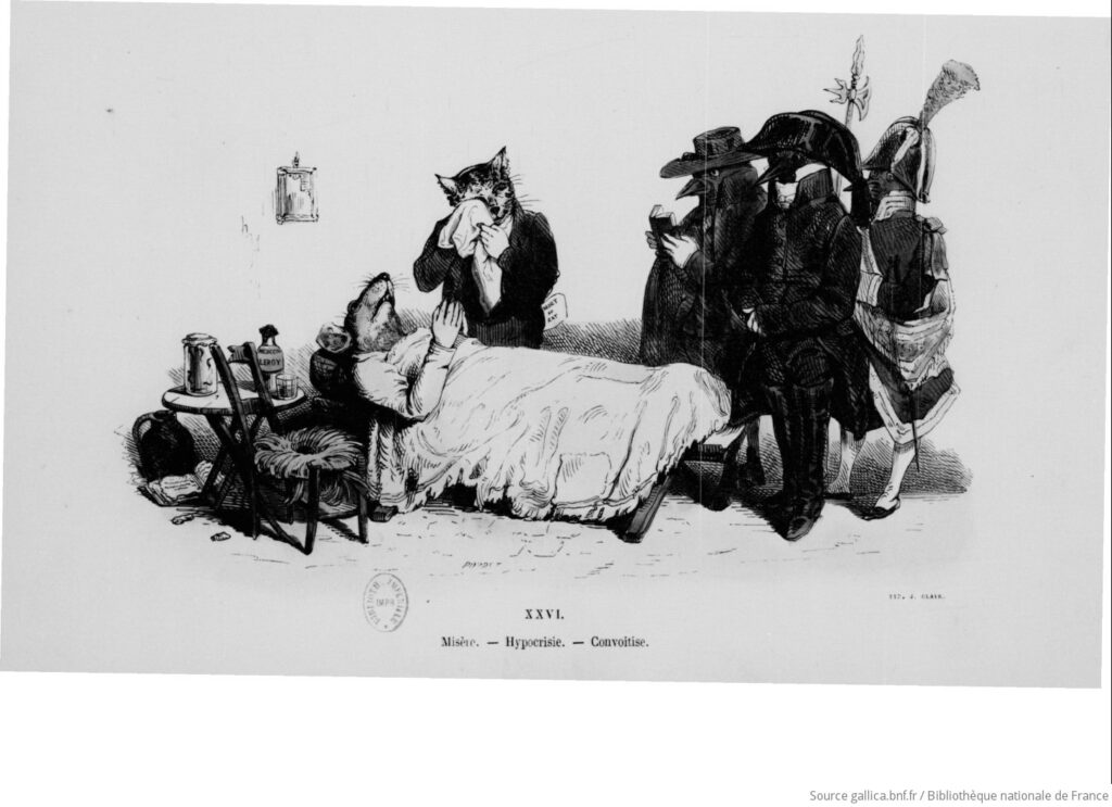 জ্যঁ ইগনেস ইসিডোর জেরার্ড (আমি নিশ্চিত ফরাসি উচ্চারণে একাধিক ব্যঞ্জনবর্ণ উহ্য থাকে, অতএব আমার বঙ্গীকরণ মার্জনা করবেন) ঊনবিংশ শতাব্দীর একজন বিখ্যাত চিত্রশিল্পী ছিলেন। তাঁকে মূলত মনে রাখা হয় ফরাসি ক্যারিকেচারিস্ট হিসাবে যিনি মূলত জে জে গ্র্যান্ডভিল ছদ্মনাম ব্যবহার করতেন। কিন্তু শুধুমাত্র ক্যারিকেচার বললেও তাঁর আঁকাগুলো সঠিক বর্ণনা দেওয়া হবে না। একটু পরাবাস্তবতার ছোঁয়া রয়েছে তাঁর ছবিগুলোতে। যেন এক স্বপ্নালু দুনিয়ার কিছু ছেঁড়া ছেঁড়া দৃশ্য তাঁর তুলিতে ধরা পরত। তাঁর Les métamorphoses du jour এবং Un autre monde, বই দুটো মূলত অ্যানথ্রপোমর্ফিক প্রাণী আর জড়বস্তুদের নিয়ে। দুটো উদাহরণ নীচে দিচ্ছি।