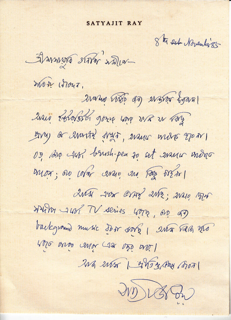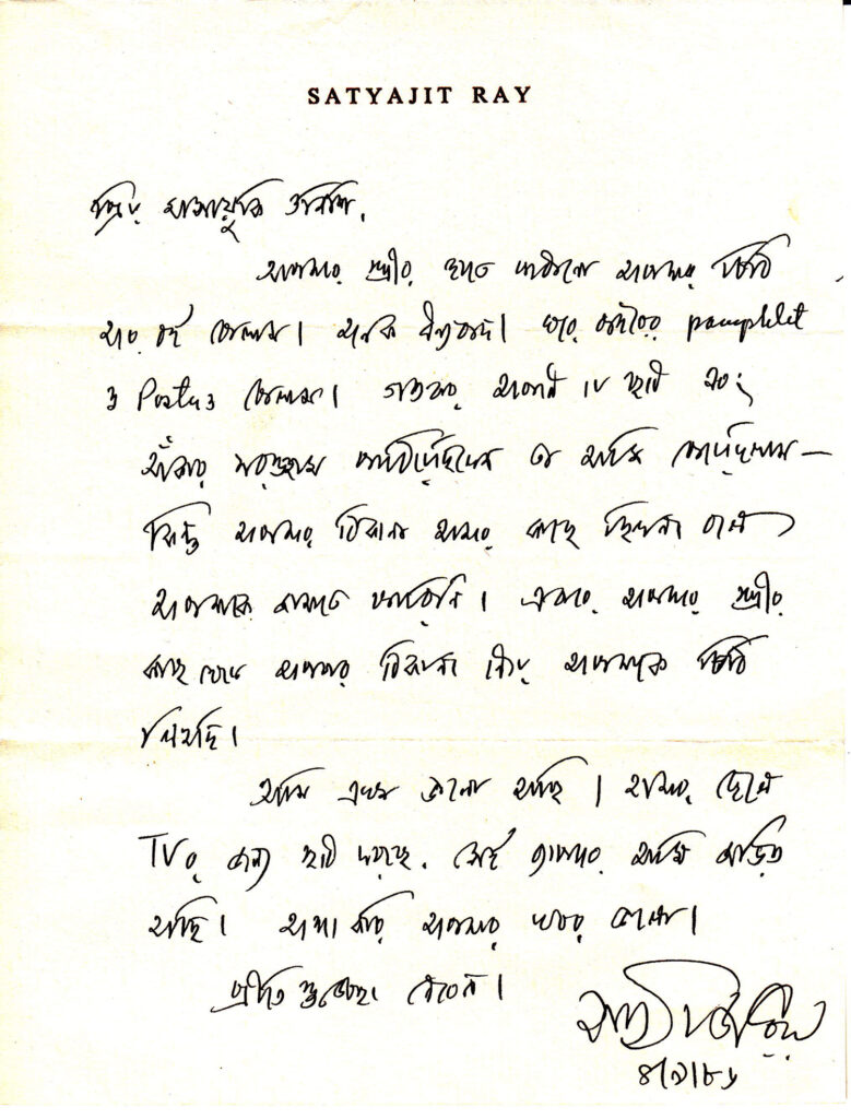 মাসায়ুকি ওনিশিকে লেখা সত্যজিৎ রায়ের দুটো চিঠি: