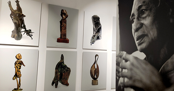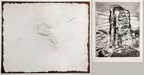 প্রদর্শনীতে ওঁর বেশ কিছু টুকরো বক্তব্য শোভা পাচ্ছে এদিক ওদিক, সেগুলি পড়লে ওঁর ভেতরের আগুনের আভাস পাওয়া যায়। এই আগুনে হলকা নেই, রয়েছে ঘন নীল, নিরাসক্ত অথচ দৃঢ় এক ঠান্ডা উত্তাপ। আর কিছু অভিমান, হয়তো বা। দোতলায় একটি গুপ্তধন রয়েছে, যার ভেতরে উঁকি মারছে অত্যন্ত জরুরি কিছু কাগজ। দেখতে অনুরোধ করছি। সোমনাথবাবু-র ভাস্কর্য একটিও নেই, কিন্তু আছে তার ছবি। প্রামাণ্য কালেকশন। স্কেচ, ড্রইং, এচিং সংগ্ৰহ করা গেছে বিভিন্ন জায়গা থেকে। ভাস্কর্যের ক্ষেত্রে তা সম্ভব হয় নি। সাদার ওপর সাদায় ‘উন্ড’ কে ভাস্কর্য না ছবি কী বলা উচিত জানি না। মথিত, পীড়িত, পেপার পাল্পকে নাজেহাল করে সৃষ্টি করা সিগনেচার কাজ ওঁর। এই সূত্রের সদর দরজা পেরোলে পৌঁছনো যাবে ধাতুর ভাস্কর্যের অন্দরমহলে। সোমনাথবাবুর নিজের কথা দিয়ে শুরু করি, “I am somewhat apprehensive about calling these works sculpture. They have no weight, no substance, no dimensions: all they have is the aspect of wounds. However the wind can pass freely through the figures. I find it comfortable to just call them bronzes. They are small in size because they are the result of ten fingers working on sheets of wax.”