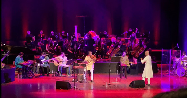 একদিকে শান্তনু মৈত্রের পরিচালনায় বেহালা (অম্বি সুব্রমনিয়াম), সরোদ (প্রতীক শ্রীবাস্তব), সেতার(মেহতাব আলি নিয়াজী), ড্রামস, গিটার, পিয়ানো, বাঁশী, তবলা আর ঢোল (শ্রীধর পার্থসারথী)-এ রিনরিনিয়ে উঠল ভারতীয় সত্তা র কায়জাদ প্যাটেল-এর পরিচালনা সিম্ফনি অর্কেস্ট্রার পাশ্চাত্য ছোঁয়ার সুর এসে মিলে গেল প্রাচ্যের অঙ্গনে। সে এক অভূতপূর্ব মুহূর্ত। সুরের অনুরণন তখন ছড়িয়ে পড়ছে দর্শকদের মনে, তাঁদের শরীরী ভাষায় আন্দোলিত হচ্ছে রবিঠাকুরের গান আর গান্ধীজীর জীবনের মূল মন্ত্র।