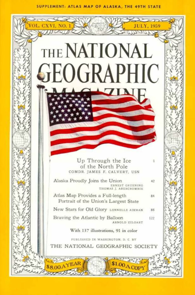 বাদামি একরঙা প্রচ্ছদ। চার ধারে সরু রুলের কালো ফ্রেমের মধ্যে লেখা পত্রিকার নাম। দৃশ্যত অনাকর্ষক। আটানব্বই পৃষ্ঠার এই প্রথম সংখ্যাটির দাম ছিল পঞ্চাশ সেন্ট। খুচরো কিছু মুদ্রণপ্রমাদ কিংবা ‘আপাতত ম্যাগাজিনটি অনিয়মিতভাবে বেরোবে’— এমন ঘোষণা থেকে মনে হয় একেবারে শুরুতে এর ভবিষ্যৎ নিয়ে ততটা উচ্চাকাঙ্ক্ষী বা সুনিশ্চিত ছিলেন না কর্তৃপক্ষ। কিন্তু এক দশকের মধ্যেই মাসিক পত্রিকা হিসাবে সযত্ন নিয়মিত প্রকাশে শুধু আমেরিকা নয়, তার বাইরেও নিজেদের কাজের ছাপ রাখতে থাকেন তাঁরা। প্রথম সংখ্যাটিতে ছাপা হয়নি কোনও ফোটোগ্রাফ; কিন্তু কালক্রমে ম্যাপ আর ফোটোগ্রাফই ‘ন্যাশনাল জিওগ্রাফিক ম্যাগাজিন’-এর ব্যতিক্রমী বৈশিষ্ট্য হয়ে দাঁড়ায়।
