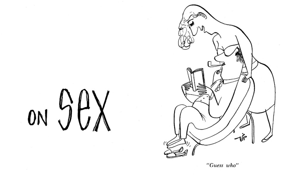 ‘We like our apartment. We enjoy mixing up cocktails and an hors d’oeuvre or two, putting a little mood music on the phonograph, and inviting in a female acquaintance for a quiet discussion on Picasso, Nietzsche, jazz, sex. ’