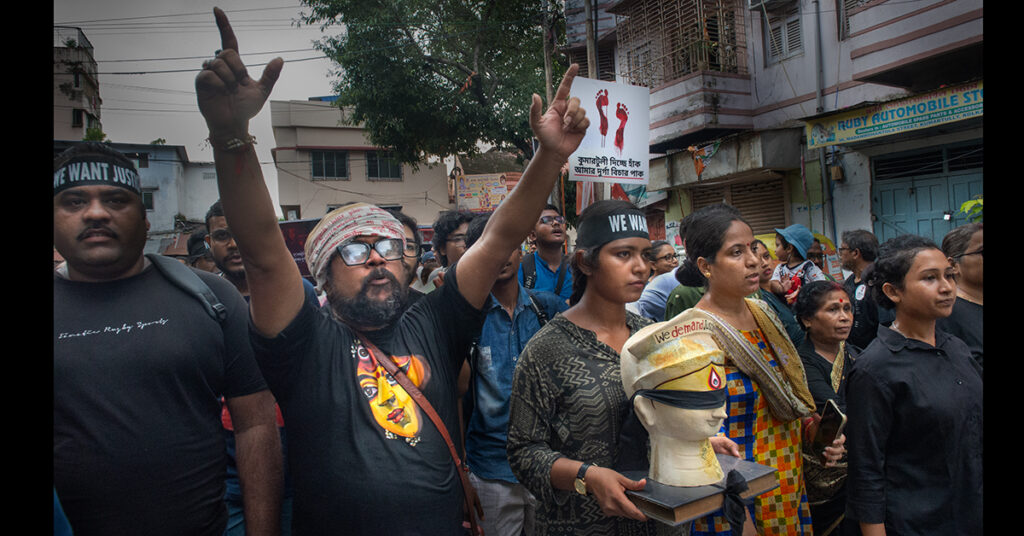 সমকালে ফিরে আসতেই হচ্ছে। অতীতে বীভৎসতার বহু রূপ একাধিকবার দেখেছি আমরা। সাম্প্রতিকতম মর্মান্তিক ঘটনার পর স্তম্ভিত জনগণ প্রথমে বুঝে উঠতে পারেনি অনেক কিছুই। যেহেতু খবর হল একজন অপরাধী ধরা পড়েছে, অতএব বিচার, সাজা হবে অথবা ধামাচাপা পড়ে যাবে, এর যে-কোনও একটা হতে চলেছে কিছুদিনের মধ্যে, এমনই ধরে নেওয়া গেল। ব্যাপারটা একটি বিচ্ছিন্ন ঘটনা রইল না পরবর্তী আরও কিছু ঘটনার জেরে। আভাস পাওয়া গেল বিশাল এক সংগঠিত দুর্নীতির, যা বৃহৎ অর্থে ভয়ানক জনবিরোধী। ছাত্র ডাক্তাররা জোরালো প্রতিবাদে নামলেন। খবর ছড়াল দ্রুত। প্রশাসন ও পুলিশকে কাঠগড়ায় তুলল জনগণ। আওয়াজ উঠল ‘বিচার চাই’। আহ্বান এল রাত দখলের। একটিমাত্র অপরাধীর বিরুদ্ধে শুধু নয়, জনআক্রোশ বর্ধিত হল বৃহত্তর দুর্বৃত্তগোষ্ঠীর প্রতি। প্রায় সর্বস্তরের জনগণ সামিল হলেন প্রতিবাদযুদ্ধে। এক নজিরবিহীন ব্যাপার। সাতে-পাঁচে, গোলমালে থাকতে না চাওয়া সাধারণ মানুষ ভেঙে বেরিয়ে এলেন মজ্জাগত, অলস ঔদাসীন্যের দীর্ঘ অভ্যেস থেকে। মিছিল বেরোলো একের পর এক। ধৈর্যের বাঁধ ভেঙে গেলেও নিয়ন্ত্রণ রইল মিছিলে। জনসমর্থিত জুনিয়র ডাক্তাররা অভাবনীয় সংযম ও বুদ্ধিমত্তাকে সামনে রাখলেন। নিজেদের লক্ষ্যে অবিচল থেকে। নজর রাখলেন আন্দোলনে, যাতে কোনও রাজনৈতিক পতাকার রং না লাগে। বিরোধী রাজনৈতিক দলেরা রাস্তায় নামল। কিন্তু মূল আন্দোলনে এদের সঙ্গ পরিহার করা হল। দলগত রাজনীতির গোলমেলে ঘোরপ্যাঁচে মুভমেন্ট বিশৃঙ্খল হয়ে যেতে পারে, অনুভব করেছিলেন সবাই। রাত দখলের অভিযানের স্মার্ট চরিত্র নতুন এক জনগর্জনের চেহারা দেখাল।
