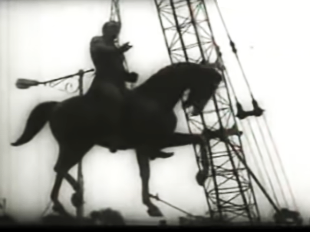 মৃণাল সেনের ‘ইন্টারভিউ’-এ আমরা দেখেছি ১৯৬৯ সালে কলকাতার রাস্তাঘাট থেকে মূর্তি অপসারণের ছবি। কান্দাহারের নায়ক, লর্ড রবার্টসের স্ট্যাচুকে দড়ি দিয়ে বেঁধে অসহায় ভাবে উল্টোমুখে নিয়ে যাওয়া হচ্ছে ময়দান থেকে। চাকার ঘর্ঘর শব্দের সাথে যেন সময়ের পাতাও উড়ে যাচ্ছে পেছনের দিকে, যাতে পুরনোকে মুছে নতুন ইতিহাস লেখা সম্ভব হয়। সেই সব স্ট্যাচুর মধ্যে কিছু স্থান পায় ব্যারাকপুরে ফ্ল্যাগস্টাফ হাউসে, আর কিছু ভিক্টোরিয়া মেমোরিয়ালে।