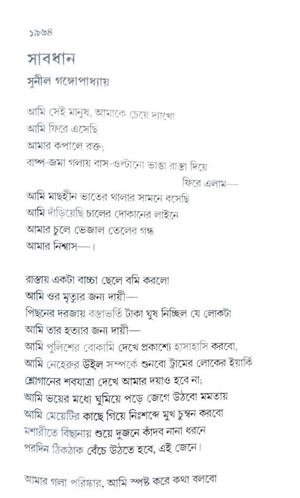 সূত্র : ‘কবিতাসমগ্র ১’, সুনীল গঙ্গোপাধ্যায় (প্রথম সংস্করণ; আনন্দ, জানুয়ারি ১৯৯২)
