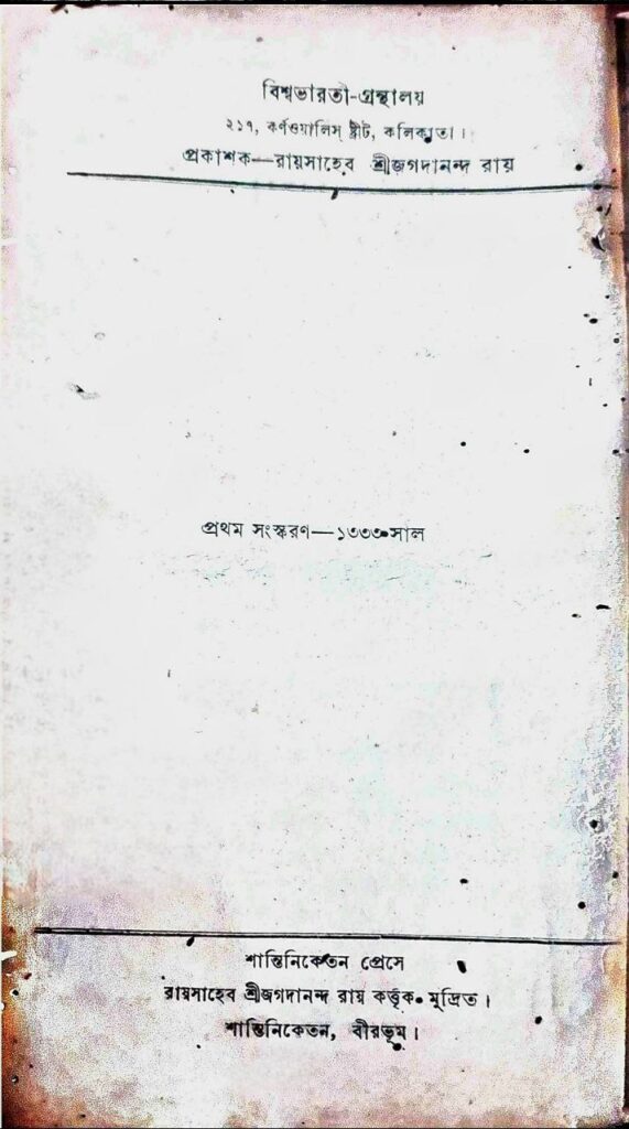 ১৩৩৩-এ প্রকাশিত বাংলা গ্রন্থ সংস্করণ-এর প্রেস লাইন