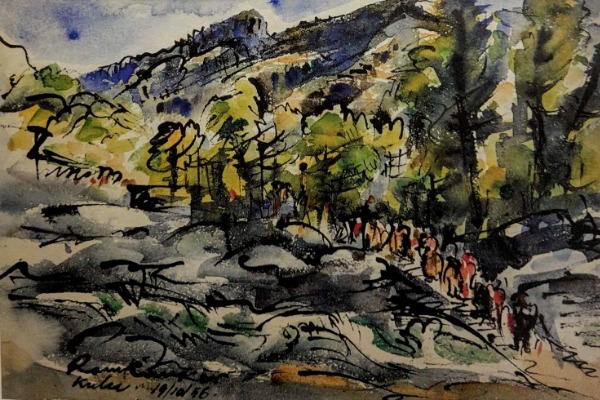 ড্রইং করাটা প্রতিদিনের রুটিনমাফিক কাজ ছিল তাঁর। চার বছর ধরে আমি তাঁকে খুব কাছ থেকে জেনেছি যে, তিনি গড়ে একটি করে জলরঙের ড্রইং করেছেন প্রতিদিন। গোড়ার দিকে ইতিমধ্যেই প্রচুর ড্রইং করেছিলেন। এবং আমার বিশ্বাস, তাঁর এই ধারা মধ্যপঞ্চাশ পর্যন্ত অব্যাহত ছিল। ছুটি কিংবা অল্পসময়ের জন্য যখনই তিনি শান্তিনিকেতনের বাইরে কোথাও গেছেন— কাঠমান্ডু, শিলং, রাজগীর, ভীমবাঁধ কিংবা বৈজনাথ, গয়া, পুরী প্রভৃতি জায়গা থেকে সঙ্গে করে বয়ে এনেছেন গাদা গাদা ড্রইং এবং জলরঙের কাজ। এগুলি রোজনামচা (diary) লেখার মতো ছিল তাঁর কাছে। যেগুলির মধ্য দিয়ে তিনি চিহ্নিত করে রাখতেন তাঁর আবেগ, তাঁর ভবিষ্যৎ পরিকল্পনার কথা। এবং বিবেচনা ও বিশ্লেষণের মধ্য দিয়ে কাজ করতে করতে এগিয়ে যাবার কথা। সেগুলির খুব অল্প কয়েকটিই একসঙ্গে দেখতে পাওয়া যায় আজ। তাদের বেশির ভাগই সময়ের ছোবলে কোথাও মিলিয়ে গেছে, কিছু কিছু দান করা হয়েছে অথবা বিক্রি হয়ে চলে গেছে অন্য কোথাও। যদি সেগুলি জড়ো করে একসঙ্গে আনা যায়, তবে তার মধ্যে পাওয়া যাবে শক্তিশালী একটি শিল্পাবয়ব।