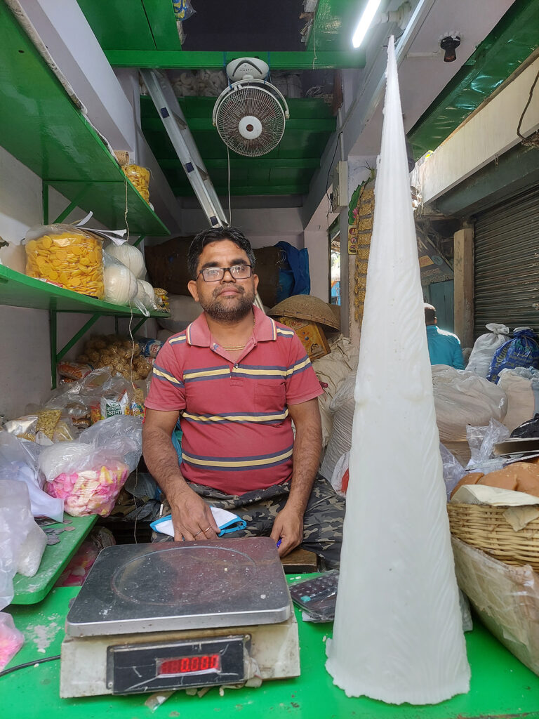 কত পুজো হল এবারে? খাস খবর নেওয়ার জন্য গেলাম রাজার বাজারের ভেতর গোঁসাইগলিতে। সেখানে বিকোয় মঠ (স্থানীয় উচ্চারণে ‘মট’)। স্রেফ চিনি দিয়ে এক আশ্চর্য মেঠাই। ছুঁচলো শঙ্কুর মতো দেখতে। যত বড়, তত দেখনদার। চারিচারা বাজারে যে ভদ্রকালী পুজো হয়, তার ভোগ সাজানোর নামডাক আছে। সেখানে অন্তত দু’ডজন বড় মঠ দেখেছি এবারেও। নানান রঙের। ‘কেমন বিক্রি হল এবার?’ দোকানে রয়ে যাওয়া একটা মাত্র বড় মঠের দিকে তাকিয়ে দোকানি বললেন, ‘বড় মট দেড় হাজারের মতো গেছে!’ দেড় হাজার! মানে কত পুজো হল এবার? দোকানি হেসে বললেন, ‘পাঁচশোর ওপর।’