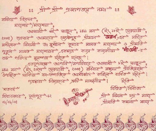 সাধুর বিপরীত চলিত। আবার, অসাধুও। যাবতীয় অসৎ বা অসাধু অনুষঙ্গ এড়িয়ে জগতের পবিত্রতম শব্দমালা রচনার সহজ আকাঙ্ক্ষাটিও কখনও সাধু ভাষা নির্বাচনের কারণ হয়ে পড়ে। যেমন, বিয়ের কার্ড। তার গতবাঁধা সস্তা বয়ানটি আজও বেশিরভাগ ক্ষেত্রে সাধু ভাষাতেই লেখা হতে দেখি। ‘রাত দশটা’ না, বিয়ের লগ্ন পড়ে ‘রাত্রি দশ ঘটিকায়’। ‘আমার বাড়িতে’ নয়, নেমন্তন্ন করা হয় ‘মদীয় বাসভবনে’। এক্ষেত্রে অবশ্য আরও একটি ব্যাপার কাজ করে। আমরা, সাধারণ মানুষরা অনেক বিষয়ই নতুন করে ভাবতে চাই না। যা প্রচলিত, তাকেই চূড়ান্ত ধরে নিয়ে ‘টেমপ্লেট’ হিসেবে ব্যবহার করে চলি। ভাবনাচিন্তার একপ্রকার অসারতাও অনেক সময় এসবের পিছনে থাকে। ফলে, কোনও আমন্ত্রণপত্রের ক্ষেত্রে সাধু ভাষার প্রথাগত বয়ানটিই বস্তুত চালু বা চলিত হয়ে দাঁড়ায়।