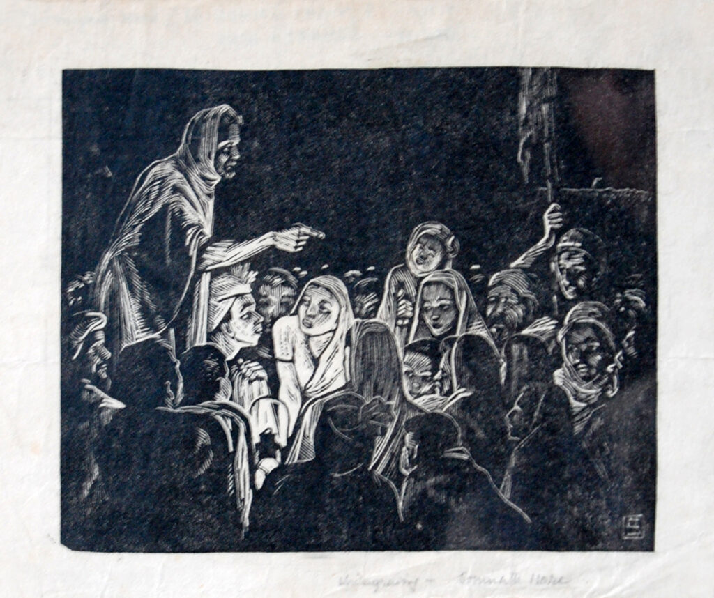 সোমনাথ হোর শান্তিনিকেতনে শিক্ষক হিসাবে যোগ দেন ১৯৬৭-এ, কিন্তু শান্তিনিকেতনের শিল্পীদের সঙ্গে ওঁর সম্পর্ক পঞ্চাশের দশকের গোড়া থেকেই। মতবাদের প্রতি শ্রদ্ধা সত্ত্বেও উনি বুঝতে পেরেছিলেন যে সমাজতন্ত্রী বাস্তববাদের গণ্ডি যথেষ্ট সীমিত, এবং নন্দলাল এবং বিনোদবিহারীর মতো শিল্পীরা একটা মডার্নিস্ট দৃষ্টিভঙ্গি থেকে প্রিন্টমেকিং-এর জগতে নতুন সম্ভাবনা অনুসন্ধান করছিলেন, যা অনেক বেশি ফলপ্রসূ ছিল। আমার মনে হয় প্রধানত এটাই শান্তিনিকেতনের প্রতি ওঁকে আকর্ষণ করে।
