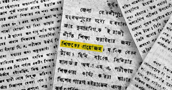 ‘প্রধান শিক্ষকের পদ রংপুর জেলার কুণ্ডী গোপালপূরস্থ ইং বঙ্গ বিদ্যালয়ে। বেতন ৩৫ টাকা। ভূম্যাধিকারীর পুত্রকে প্রাইবেট পড়াইলে বাসা খরচ লাগিবে না। প্রবেশিকা পরীক্ষোত্তীর্ণ ব্যক্তিগন আবেদন করিবেন।’