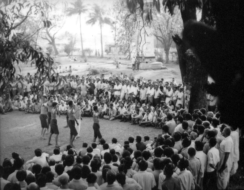 আটের দশকের মাঝামাঝি একবার বাদল সরকার পাকিস্তান গিয়েছিলেন। লাহোরে, উর্দু কবি ফৈয়জ়ের স্মরণে, ‘ফৈয়জ় মেলায়’। সঙ্গে ছিলেন পাঞ্জাবের গুরুশরণ সিং, দিল্লির তিনজন পথনাটকের সঙ্গে যুক্ত মহিলা, মহিলাদের ব্যাপার নিয়ে থিয়েটার কর্মী— শ্রীমতী রতি বার্তোলমিউ, মায়া রাও এবং অনুরাধা কাপুর; সফদর হাশমি, ত্রিপুরারি শর্মা। এখন এই সময়ে দাঁড়িয়ে এ যে কল্পনার বাইরে— তা বলাই বাহুল্য।