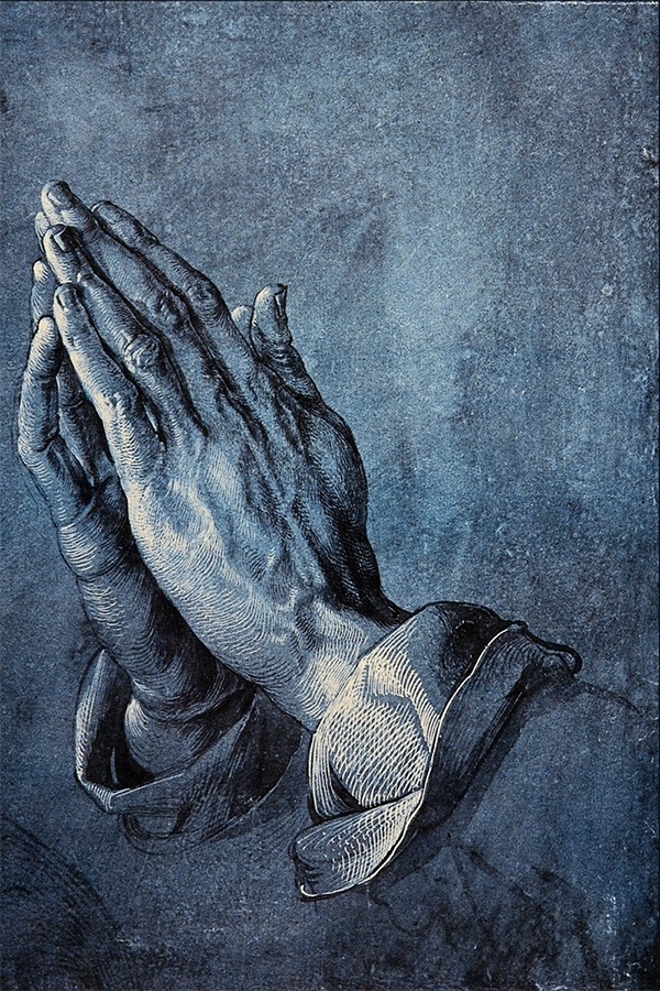 ছবিটি পঞ্চদশ-ষোড়শ শতকের বিখ্যাত জার্মান শিল্পী আলব্রেখট ড্যুরারের আঁকা। শোনা যায়, ফ্রাংকফুর্টের কোনো চার্চের অল্টারপিসের জন্য ফরমায়েশি এক ট্রিপটিকের (তিনভাগে বিভক্ত ছবি, তিনটে প্যানেলে আলাদা-আলাদা করে এঁকে, কবজা দিয়ে জুড়ে দেওয়া হয়) প্রস্তুতি হিসেবে এই স্টাডিটি এঁকেছিলেন ড্যুরার। আবার অনেকে মনে করেন, হাতে তৈরি বিরল নীল কাগজের গুণাগুণ পরীক্ষার জন্যেই ছবিটি আঁকা। সে যা-ই হোক, মানুষের সমর্পণের এই ভঙ্গিটি, তার পর থেকেই, দেশকালের সীমানা অতিক্রম করে, কীভাবে যেন সর্বজনীন হয়ে উঠেছে।