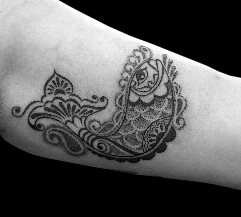 ‘২০১৩ থেকেই আমি ইউরোপের নানা দেশে ভ্রমণ করতে থাকি, নানা কনভেনশনে উপস্থিত থাকি। আমার কাজ তখন দেশের চেয়ে বিদেশে বেশি কদর পেতে শুরু করেছে। ২০১৫ সালে আমাকে জার্মানির একটা ট্যাটু স্টুডিও রেসিডেন্সির প্রস্তাব দেয়। এই সময়েই আমার সঙ্গে আমার পার্টনার জঅ্যায়ানিনের আলাপ হয়। দেশের পাট চুকিয়ে মানহেইমে ঘর বসাতে বেশি ভাবতে হয়নি’, হেসে ওঠেন ওবি, ‘তিন বছর পর আমি আর জঅ্যায়ানিন সিদ্ধান্ত নিই, আমাদের নিজেদের একটি ছোট স্টুডিও করার সময় এসেছে, এবং সেখান থেকেই জন্ম নেয় মান্ত্রা ট্যাটু আতেলিইয়র।’