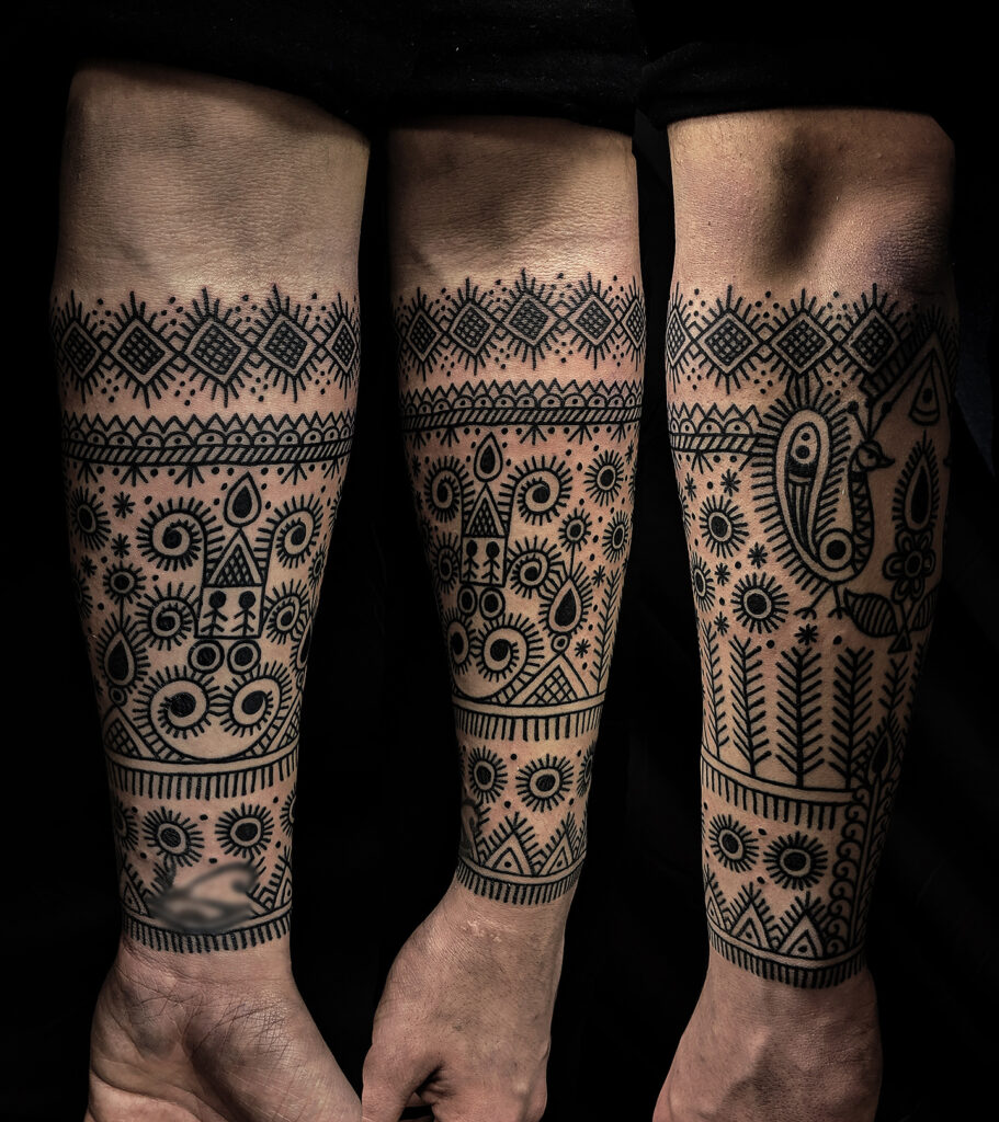 লোকপ্রথার প্রচলিত বাহুবন্ধনীর প্রভাবে ওবির সৃষ্ট স্লিভ ট্যাটু বা আস্তিন উল্কি