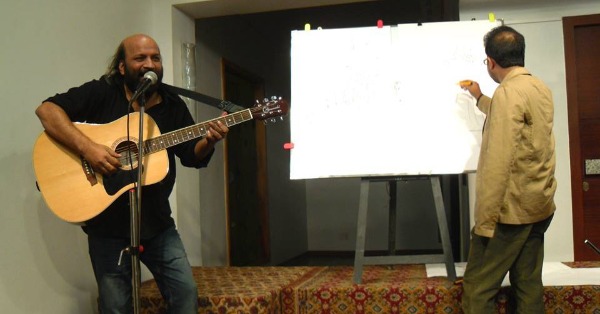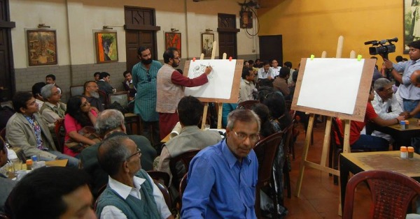 কলেজ স্ট্রিট কফি হাউসে লাইভ ওয়ার্ডটুন করছেন শিল্পী শুভেন্দু সরকার