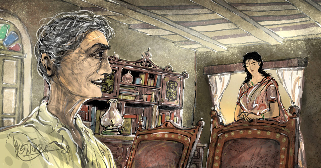 ‘তাহলে তো ভালই; তোমাকে সম্মান করেই নাহয় তোমার ইনস্টিটিউটের কোয়ার্টারে তোমার সঙ্গে তাঁরা থাকবেন। দুনিয়ার পাহাড়ি-মজুর, কুলি-কামিন এবং গাছপালা-পাহাড়ের ছবি এঁকে বা ম্যাজিক দেখিয়ে তাক লাগিয়ে দেবেন সকলকে!’