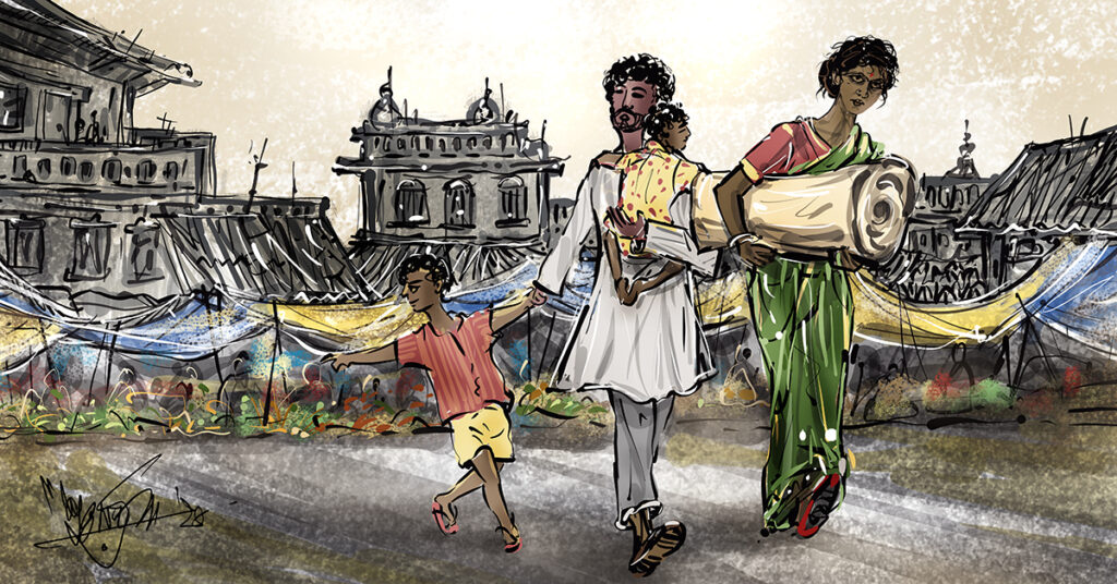 ‘কী কাজ দেব! বাচ্চা নিয়ে অত দূর থেকে এসে তো আর আমার এই স্টুডিয়ো ঝাড়ুপোঁছার কাজ করতে পারবে না; আবার মায়ের সঙ্গে যে সবজি বেচবে তারও উপায় নেই।’