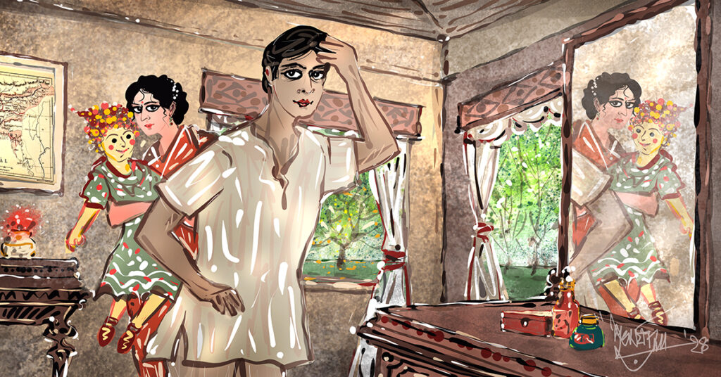 সোনাকাকিমার গলা পেয়েই, তার সেই পুতুলটাকে কোলে করেই, ভূতেশের ঘর থেকে বেরিয়ে গেল প্রভা। ভূতেশের মনে পড়ল যে, তার বিয়েতে ‘কনে-তত্ত্বে’ একটা পুতুলের টুকরিও এসেছিল বটে; সেটা নিয়ে বড়ভাইঝি তারা টানাটানি করলে, বড়খুকি বারণ করেছিল; প্রভাকে দেখিয়ে মনে হয় সেটা সে অন্য কোথাও সরিয়েও রেখেছিল; অষ্টমঙ্গলায় বাপের-বাড়ি যাওয়ার সময়ে প্রভার জিনিসপত্রের সঙ্গে ওই পুতুলটাও নিশ্চয়ই সে সঙ্গে নিয়ে গিয়েছিল। ভূতেশ অবশ্য সঠিক জানে না যে, প্রভার কোলে-কোলে ঘোরা আজকে দেখা এই পুতুলটাই তার সেই তত্ত্বে-আসা পুতুলই কি না! তবে একটা কথা ভেবে বেশ মজা পেল ভূতেশ যে, এই পুতুলের বিয়েতেই সে একই সঙ্গে নেমন্তন্ন এবং প্রথম একখানি পত্র পেয়েছিল তার বউ প্রভার কাছ থেকে।